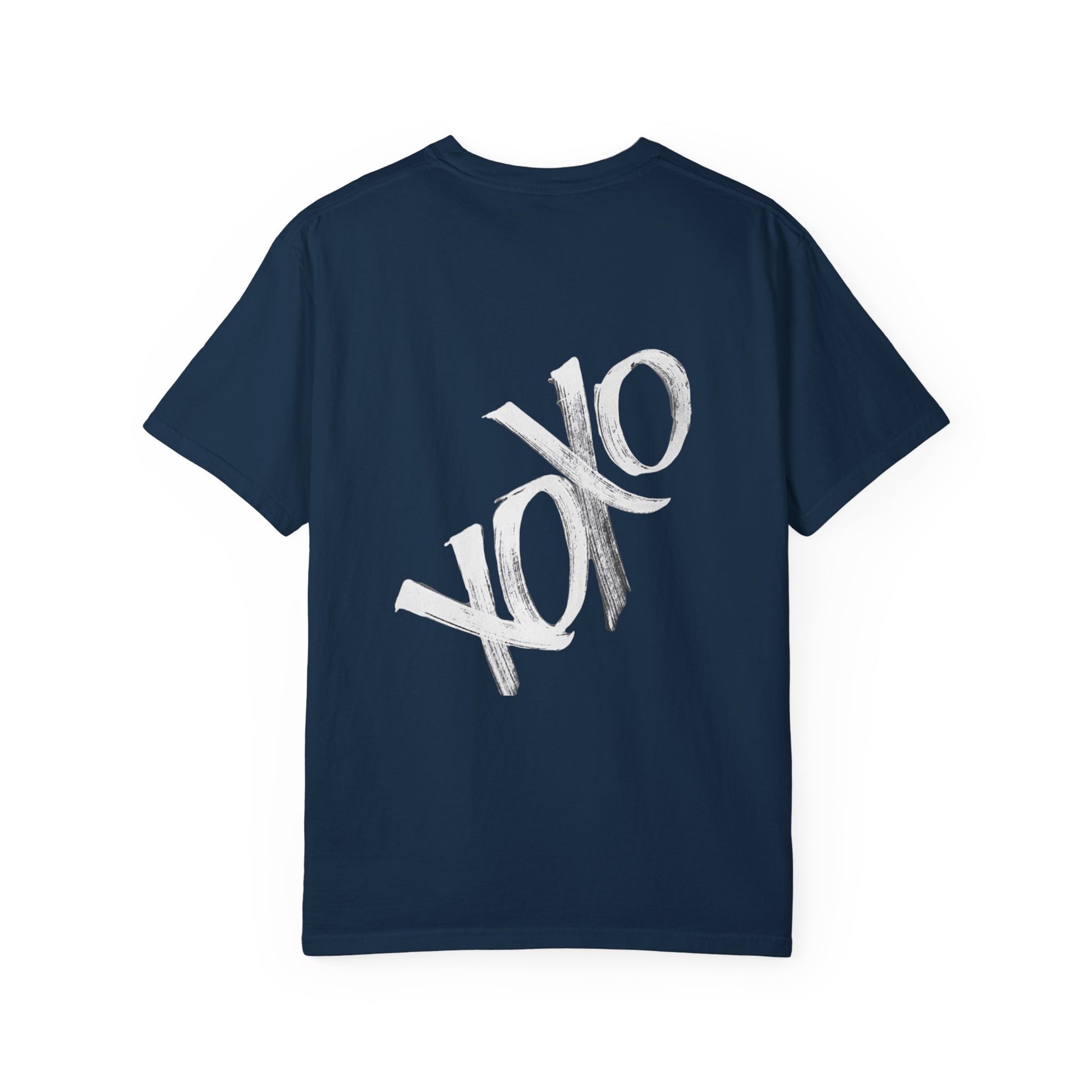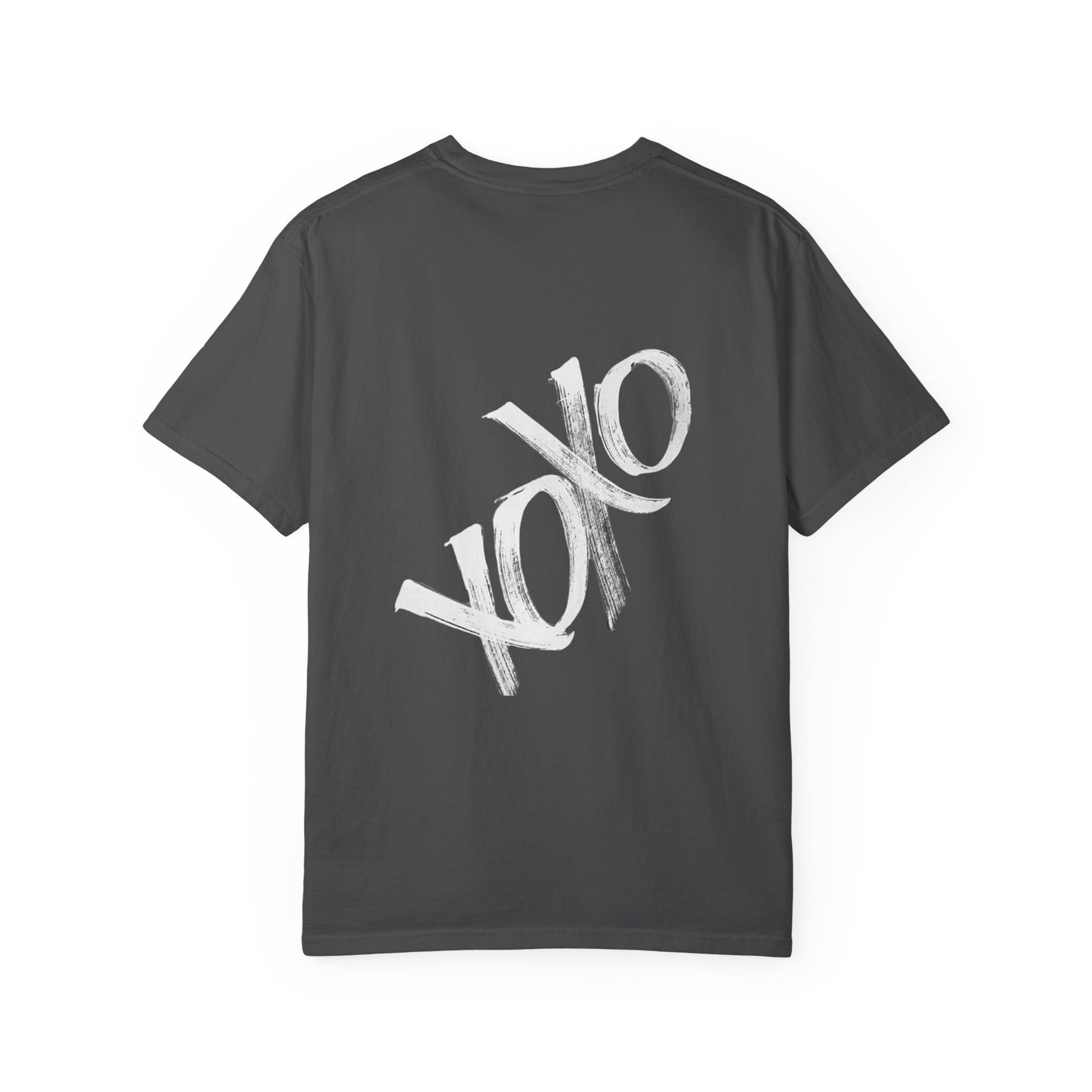 A lived-in, garment-dyed tee that carries a quiet confidence. Soft, slightly faded color and a relaxed fit make it feel like an old favorite from the first wear. A bold, brush-stroke “XOXO” sits across the back—expressive, hand-painted energy that reads both romantic and rebellious. Throw it on for a slow morning coffee, a city walk, or an easy night out. It layers cleanly under a denim jacket or looks deliberate with vintage sneakers. The breathable 100% ring-spun cotton and medium-weight fabric keep the silhouette grounded and wearable year-round.